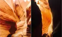 A trip to Antelope Canyon is truly a journey of light. The reason you come here is to witness the magical effect of the "light of heaven" filtering through the narrow slits at noon. We booked late and missed the 12:00 PM tour, so we only got the 1:00 AM tour. The lighting wasn't quite as perfect, but it was still beautiful. The tour guides were knowledgeable about photography and would tell you which angles offered the best shots and even help you set some simple parameters. This was a great touch and worth the price of admission. :)