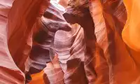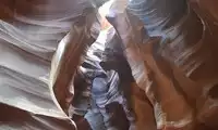 I was fooled into going there by the photos online, which are heavily photoshopped. Upper Antelope Canyon only receives sunlight from 12:00 to 1:00 noon, when the sun is directly overhead. We entered at 12:30, and even then, it was quite dark inside, and the photos came out dark too. It took a lot of patient post-production editing to achieve the vibrant colors you see online. It's just a short walk inside, and we came out quickly. Personally, I found it average, a bit of a bummer, and not a must-do!