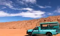 In the Upper Antelope Canyon, you can take an open-air jeep. First, you'll be covered in sand in the desert, then your hat and sunglasses will fall all over the car [careful if you're prone to motion sickness]. Then you can enter a crevice in the rocks and experience the equally breathtaking wonders of nature.