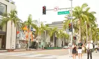 Los Angeles's famous wealthy area, where many luxury sports cars shuttle through and various brand stores are lined up.