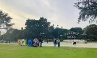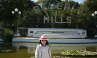 Beverly Hills is actually the name of a neighborhood. Typing it into Google Maps will definitely take you to the Civic Center. I came here simply to take a photo with this iconic sign. In front of the sign stands a small lotus pond, its dark green waters dotted with colorful lotus blossoms, scattered in an orderly pattern. Flirtatious bees swarm among the flowers, gathering nectar, creating a vibrant atmosphere amidst the stillness. After nine o'clock, the intense California sun had begun to blaze, but the gentle breeze still brought a pleasant feeling.