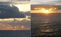 It's said that from Bird Island, you can see the crimson sun rising over the Pacific Ocean, a truly spectacular sight. When we arrived at the Bird Island observation deck, many cars were already parked, and locals were arriving on stylish motorcycles. The sky gradually brightened, and the east began to turn pale. But the thick clouds formed where the sea and sky met. When the sun broke through the horizon, it illuminated the dark clouds with a fiery crimson, illuminating the surrounding clouds with a brilliant red. The sunlight traveled along the sea surface at the speed of light, reaching us directly in front of us.