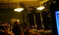 The rich people sat in the upstairs boxes next to the stage, while the common people like me had to sit downstairs. In fact, I think the view from the boxes is not as good as the front seats downstairs.