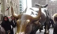 Bustling commercial street, the big bronze bull is worth touching ~ haha