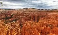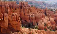 Bryce Canyon National Park is a national park in southwestern Utah, USA. Despite its name, Bryce Canyon is not a true canyon, but rather a vast natural amphitheater carved by erosion along the eastern face of the Ponsagant Plateau. Its unique geological formations, called hoodoos, are formed by wind, river water, and ice erosion, as well as lakebed sedimentary rock. The red, orange, and white rocks within them create a unique natural landscape, earning it the nickname "a temple of natural stone figurines." (From Baidu Encyclopedia)