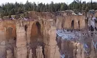 Bryce Canyon is the scalloped edge of a large rock mesa, not a true canyon. It's a series of large, circular depressions carved by erosion into the Paunshagunt Plateau in southwestern Utah. Much of the formation Bryce Canyon sits on resembles a slice of bread with one side gnawed. Erosion of the pink cliffs has formed a dozen or so large caves that define the eastern edge of the plateau.