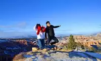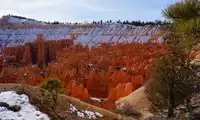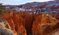 The North Rim of the Grand Canyon is closed in winter, so we skipped it because we were too lazy to go. Arriving at Bryce Canyon, we learned the park shuttles don't run in the winter either, so we had to drive to each attraction. Each parking lot is a short walk uphill to a viewing point. If you're only choosing one spot, Inspiration Point is recommended. For a more expansive hike, you can wait for sunset to arrive at Sunset Point, then walk down a bit and then back again. The hike between Sunset Point and Sunrise Point takes about an hour one way, so if you have a shuttle, definitely take the hike; otherwise, you'd hate to have to walk back to get your car.