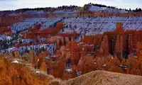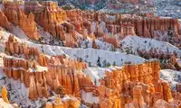 The most breathtaking scenery is Bryce Canyon National Park after a snowfall. The park's core landscape is a series of ghostly stone towers and pillars, eroded by vast expanses. Winds carrying coarse sand and gravel, and the freezing and melting of water droplets, have carved the colorful rock into bizarre shapes, creating Bryce Canyon's magnificent scenery. The sunrise at Sunset Point is brilliant and breathtakingly beautiful.