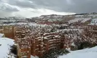 As we get closer to Bryce Canyon, we can gradually see yellow mountains covered with snow.