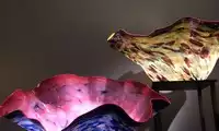 The curator of this glass museum is an uncle named Chihuly. He has one eye covered like a pirate, but the other eye is extremely sharp.