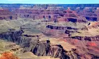 The Grand Canyon is lined with massive red rock formations. Nature's uncanny creativity has sculpted these jagged layers, creating a series of peaks and ridges, each crisscrossed by a bottomless valley, a scene of unparalleled grandeur. Even more remarkable is that, although the soil here is primarily brown, when bathed in sunlight, the rock's hues shift from deep blue to brown to red, depending on the intensity of the sun's rays. This endlessly changing color showcases the mysteries of nature's splendor. At this moment, the Grand Canyon appears like a vibrant wonderland, a vast, enchanting spectacle that will leave you spellbound. The canyon's colors and structures, especially its majestic splendor, are beyond the reach of any sculptor or painter.
