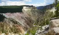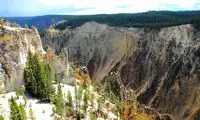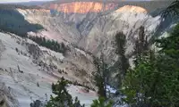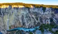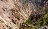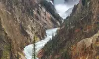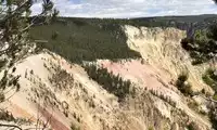 Due to long-term weathering and the nourishment of hot springs, various metallic substances in the ancient rhyolite in Yellowstone Canyon have oxidized, creating a vibrant yellowish coloration that gives Yellowstone National Park its name. Artist's Point and Inspiration Point to the north offer the best views of the canyon's grandeur. It's said there are trails leading down to the canyon floor.