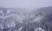 The canyon is winding and deep, and the waterfall is rushing and surging. It’s a pity that due to heavy snow, the viewing trails are closed, so we can’t walk down to the bottom of the valley to see the spectacular sight of the waterfall plunging three thousand feet.