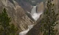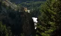 The Grand Canyon of the Yellowstone, located east of Yellowstone National Park, isn't as spectacular as the Grand Canyon, but it's still a unique sight within the geothermal-themed park. The Grand Canyon boasts two waterfalls: Upper Fall and Lower Fall. The Lower Fall has a greater drop and is the most spectacular. Artist Point is the perfect spot for photographing the Lower Fall.