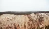 The weathered volcanic rocks in the Yellowstone Grand Canyon are also very colorful. Even on such a foggy day, the red, yellow, white and brown colors of the volcanic rocks cannot be concealed.