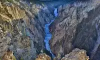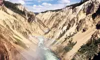 The center of Yellowstone National Park is the Grand Canyon of the Yellowstone, one of the park's most famous attractions. Visitors can admire the magnificent, deep canyon scenery and cascading waterfalls. On clear days, a rainbow can be seen across the canyon. The Yellowstone Canyon is 32 kilometers long, 450-1,200 meters wide, and up to 360 meters deep. Long-term river erosion has shaped the rock walls into vibrant colors of yellow, orange, brown, and tan, earning the Native Americans the name "Yellowstone."