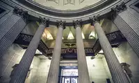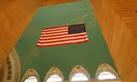 Entering the central lobby, the high, spacious space and arched dome create a striking visual experience. The interior marble decorations and exquisite sculptures are breathtaking. The tall arched windows are also surrounded by exquisite sculptures, and the dome is a beautiful painting. The lobby floor is also paved with marble, and the American flag in the center of the lobby was hung after 9/11.