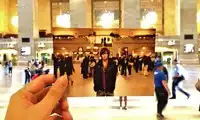 Enter Grand Central Station from the south entrance and walk straight into the main hall. The information counter with the clock overhead is the backdrop for the scene in the video. The second floor, directly behind the main entrance, was a staircase when the video was filmed, but it was replaced with an elevator when we arrived. We arrived at Grand Central Station at 9:30, and there were already quite a few people in the frame. But if we had gotten out any earlier, we wouldn't have gotten out of bed, and there might have been rush hour, so it was inevitable that many people would have been in the frame.