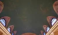 The Central Station was built over 100 years ago. The main staircase in the waiting hall is styled after the Paris Opera, though wider and more practical. The hall's starry sky dome, painted by French artist Paul Helleu based on a medieval manuscript, features a zodiac map of over 2,500 stars, marked by lights. A power switch illuminates the sky, and the sky is illuminated in a completely reversed perspective. It's said to be a God's perspective, the opposite of a human's—in other words, a view of the sky from a world beyond the stars.