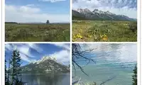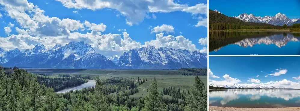 Grand Teton National Park's main attractions are the Teton Range, Jackson Lake, Jenny Lake, and the Snake River Valley. We took a circuit road through the park, gazing at the snow-capped Grand Teton peaks from various locations along Jackson Lake and the Snake River Valley. Jenny Lake is the perfect spot for viewing and photographing the Grand Teton peaks.
