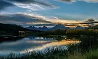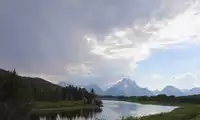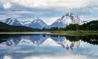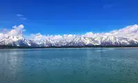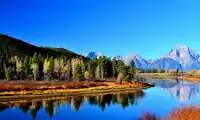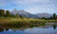 Grand Teton National Park is famous for its continuous snow-capped peaks. It stretches for more than 200 miles along the Grand Teton Range, with the Snake River flowing through the national park. The park's towering snow-capped mountains, vast grasslands, pristine lakes, and abundant wildlife together form a beautiful picture.