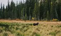 There are especially many bears in Grand Teton. In Yellowstone, I have seen many bison and deer but no bears. In Grand Teton, I saw a bear every day for three days, and each time was closer than the last. The last time was right next to the road, and there was even an old white man taking pictures two or three meters away from it. He was really risking his life. I have also seen pelicans in Jackson Lake in Grand Teton, and pronghorn antelopes on the highway in Grand Teton. One night, I saw an elk right in front of my car on the highway. Fortunately, I braked in time and didn't hit it. It ran to the grass beside the road after I braked. In addition, there is a cattle farm in Grand Teton with many cattle, and outside the fence there are many bison grazing. The inside and outside of the fence are very harmonious.