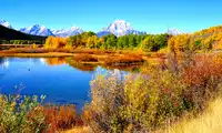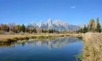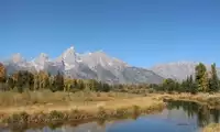Grand Teton in autumn has its own unique charm and colors. The clear rivers and golden meadows bring a bright autumn scene.