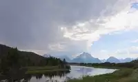 Grand Teton National Park is divided into two sections: the West and the East. I had planned to visit Jenny Lake on the West section on the day I arrived in Jackson, but the weather wasn't favorable, so I abandoned the West section. The next day, on the way to Yellowstone, I stopped by the East section. Other travel guides had described it as a lackluster destination, but it was actually much better than I'd imagined. The snow-capped mountains, visible everywhere, would have been even more stunning if they weren't obscured by clouds. However, their elusive presence added a touch of mystery...