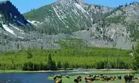 Enter Grand Teton National Park. The park's most striking feature is its numerous peaks. The entire mountain range boasts eight peaks exceeding 3,658 meters, with Grand Teton reaching 4,198 meters. Their summits are capped year-round with snow. Three granite peaks stand out: Grand Teton, East Teton, and South Teton. It's a paradise for climbers, with dedicated mountaineering schools. The park boasts a series of glaciers and glacially formed lakes. Seven lakes are dotted like pearls at the foot of the mountains, while within the mountain range, there are hundreds of alpine lakes. Lake Jenny is the most famous glacial lake, while Jackson Lake, formed by the damming of the Snake River, is the largest body of water in the area. Glaciers, canyons, streams, lakes, and waterfalls can be seen everywhere. Grand Teton National Park is also a world-renowned wildlife ecosystem, home to the world's largest herd of elk, as well as bison, antelope, mink, beaver, and many other mammals. Its marshes are renowned bird habitats, home to over 200 species.