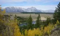 At this scenic spot outside Grand Teton National Park, you can see the beautiful Grand Teton Mountains and it is a great place to take photos.
