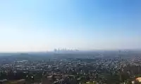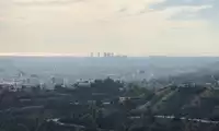 The word Hollywood can be seen in the distance from the Griffith Observatory.