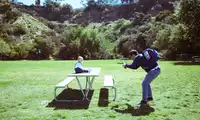 Reaching the summit takes some effort. It takes half an hour to get there, and the climb is incredibly steep, with high-end residences along the way. Living there requires both wealth and driving prowess. The summit is mostly populated by tourists. Helicopters frequently patrol the sky above the sign, partly to prevent suicide attempts and partly to prevent graffiti. After all, this is Los Angeles' most famous suicide spot and parody site. Many people even take pride in parodying the Hollywood sign.