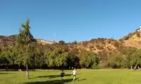 We can see the park with a lake on the slope near the Hollywood sign, which is the park we navigated to.
