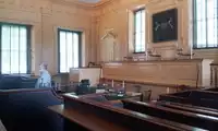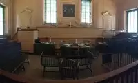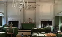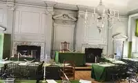 First up is the former Courtroom of the Pennsylvania Supreme Court. This room was established in 1700. On July 8, 1776, a group of Pennsylvania militiamen stormed the courtroom and destroyed the coat of arms of King George III of Great Britain, defying British colonial rule. This place became famous.