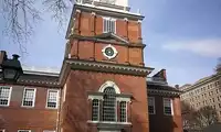 Independence Hall can be called the birthplace of the United States, no matter how you slice it. It's a two-story, old-fashioned red brick building with cream-colored doors and windows, a cream-colored spire, and a large clock nestled between the main building and the spire. Admission to Independence Hall and the Liberty Bell is free, but you must first obtain a ticket at the Visitor Center.