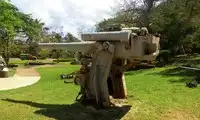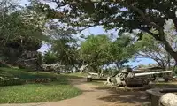 The headquarters was built in a cave behind a large rock at the foot of a cliff, cleverly utilizing the terrain's barrier properties. Hidden behind the cliff in front, it was difficult to detect. During World War II, the Japanese army, exhausted of ammunition and supplies, finally succumbed to the American attack, and the commander-in-chief committed suicide here. Today, the site has become a small, lush park. Outside, the park is dotted with phoenix trees, their orange-red blossoms scattered across the ground, making you forget for a moment the smoke of battle. The scattered remnants of the war, such as tanks and artillery, instantly evoke memories of the history that unfolded here.