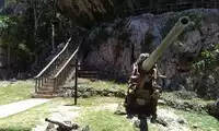 There are war relics such as tanks and cannons left over from World War II and war fortresses formed by natural limestone. You can climb into the cave, but there is nothing inside.