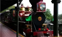 After getting off the boat, there is a very beautiful station in front, where you can take the park's train. Because Magic Kingdom is really big, sometimes it is tiring to walk around, and taking the train will make it much easier. However, the train runs along the edge of the theme park, so to get to the castle in the center of the park, you still have to walk.