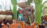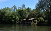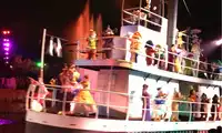 Further down the road is another area—Adventureland, as the name suggests—for adventure. It's a great place for quick service: a burger, a cold drink, and a dessert—and afterward, you'll be full and motivated to keep going. We opted for the Jungle Cruise, which comes with a fastpass. (Tip: We already had our fastpass, so we went on our food hunt.) This is essentially a science tour of the artificial jungle, with the surroundings designed to be almost realistic. Guests cruise through the jungle on a simulated boat, while the guide, in her distinctive voice, vividly explains its mysteries. For those curious about the jungle but haven't had the opportunity to explore it yet, this is a great place to get a basic understanding.