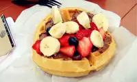 Following online guides, I headed to Frontier Land as soon as it opened. Two of MK's three major mountains are located there: Surf Mountain (No. 12) and Thunder Mountain (No. 13). There's a train that goes directly to the entrance. But I walked there on my own and grabbed a fruit waffle on the way.