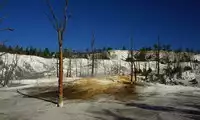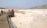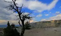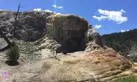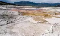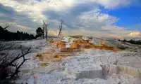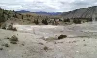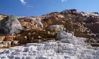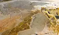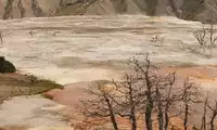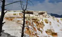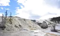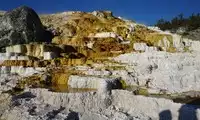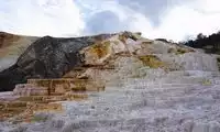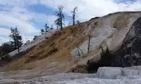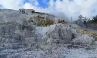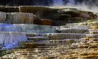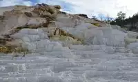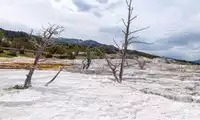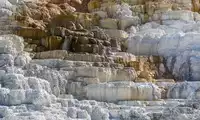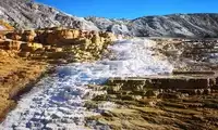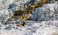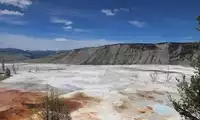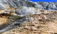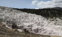 Located northwest of Yellowstone National Park, this is the world's largest known carbonate hot spring. The Yellowstone National Park Service headquarters are located here, along with the Albright Visitor Center, which is open year-round. The landscape is dominated by limestone steps, also known as the thermal terraces, which can be divided into the Upper Terraces and the Lower Terraces. Mammoth Hot Springs originally had multiple hot springs cascading down the hillside, breeding a large number of bacteria and creating a colorful staircase. However, after a tectonic shift in 2002, most of the hot springs ceased activity, resulting in the death of numerous microorganisms and the loss of color at Mammoth Hot Springs. The dead bacteria also turned into an off-white powder, which remains on the dried-out steps.