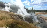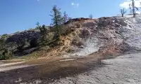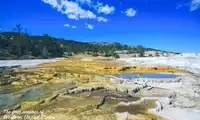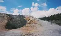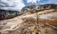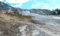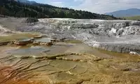 Mammoth Hot Springs is located in the northwest of Yellowstone National Park, close to the park's north entrance. It consists of two sections, the middle section, which houses the main scenic area. The scenic area is quite large, and the hot springs still erupt, but they are now smaller in size and height, giving the impression of being on the verge of exhaustion. However, the remaining scenery is still breathtaking, and one can imagine how spectacular the geothermal activity here was before 2002. It was the world's largest known carbonate hot spring. The landscape is dominated by limestone steps. Mammoth Hot Springs draws its water from the Norris Geyser Basin, reaching temperatures of up to 77°C. Back then, algae thrived in the hot springs, giving them a vibrant color palette of brown, orange, red, and green—a truly dazzling sight. However, after a tectonic shift in 2002, most of the hot springs ceased activity. The large number of microorganisms that died out caused the springs to lose their color, now predominantly brown and white.
