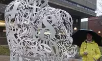 There is a work by Spanish sculptor Jaume Plensa, which was donated by an anonymous alumnus in 2010 to commemorate the 150th anniversary of the founding of MIT.
