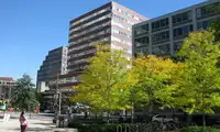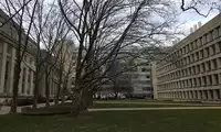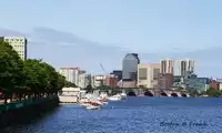 MIT is also a world-renowned university, ranked first in engineering. It's very large, with several connected buildings, and you can see some labs and classrooms. As expected, the architecture of the Institute of Technology isn't particularly artistic. The school is very close to the Charles River, and walking along the river, you can see downtown Boston on the other side.