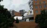I saw a wave of bizarre and avant-garde architecture, the work of world-renowned architect Gehry. Someone commented that the buildings looked like "a bunch of drunken robots having fun." There's a staircase in front of the building, and by noon, students would sit there reading, chatting, and eating. Honestly, the sun was already blazing, and we were all about to leave, but they seemed unfazed and still sat there.