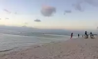 The sea water is nice, but the beach is just average. The sand is not very fine and it hurts your feet a bit. The sunset is beautiful in the evening.