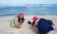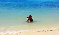 The sand isn't very fine, but it's the most romantic beach because of its beautiful star sand, which is said to bring good luck. Many honeymooning couples come here to pick shells and play in the sand.