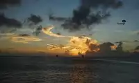Located in Saipan's bustling Garapan district, Mike Beach boasts crystal-clear waters and a fine, white, and incredibly flat sand. The location of Saipan's most upscale hotels, including the Hyatt Regency and Fiesta Resort, underscores the importance of this beach on the island. At sunset, relax on a beach chair and watch the sun set. Amidst the fading glow of the sky, a streak of setting sun shimmers across the water, creating a vibrant, shimmering scene. As night falls, the twinkling lights of distant ships contrast beautifully with the stars in the night sky, creating a truly captivating spectacle.