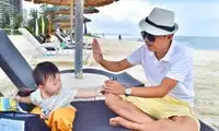 We're at the Yuetai Hotel, so we usually take Da Ge out to play in the water and sand after sunset to prevent sunburn. So the sky isn't particularly blue in the photos and videos. But it's still stunningly beautiful, hahaha!