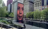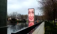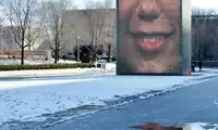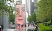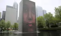 Another major attraction in Millennium Park, the Face Fountain, projects the faces of more than 1,000 Chicago residents onto a 50-foot LED screen, creating the illusion of fountains gushing out of their mouths.